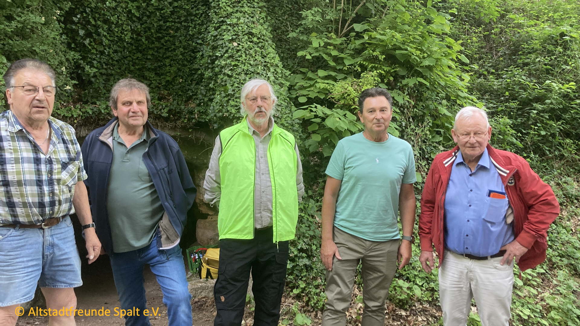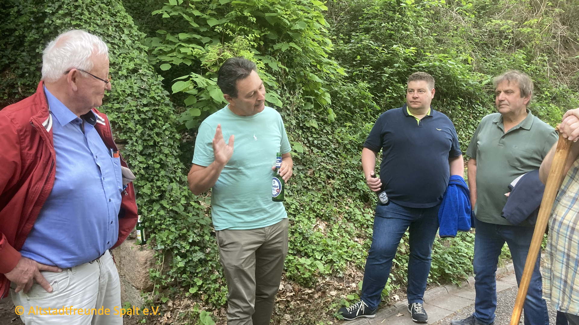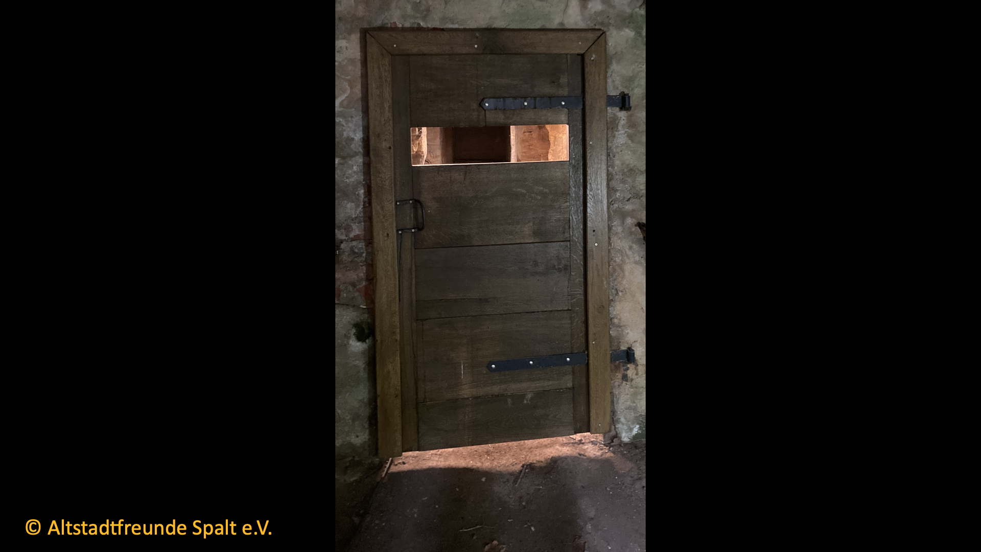 Aufgrund fehlender Belüftung hat das Raumklima im Laufe der Jahre sehr gelitten. Die Altstadtfreunde haben dieses Zeugnis der Spalter Braukultur nun etwas aufgewertet. Der 2. Vorstand Hubert Wechsler hat zunächst den Bewuchs am Eingang zurückgeschnitten und den verschütteten Luftschacht freigelegt. Dann fertigte er, mit tatkräftiger Unterstützung von Rudi Reiber, eine neue Eingangstür aus Eichenholz an und baute sie ein.