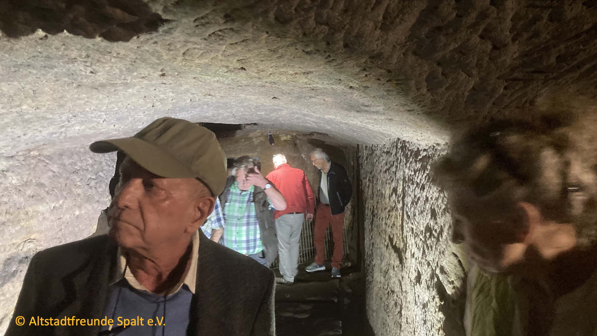Die zahlreichen historischen Felsenkeller rings um die Spalter Altstadt dienten ehemaligen Spalter Brauereien als Gär- und Lagerkeller. Im Sommer wurde hier unter alten Lindenbäumen auch das kühle Nass ausgeschenkt.
