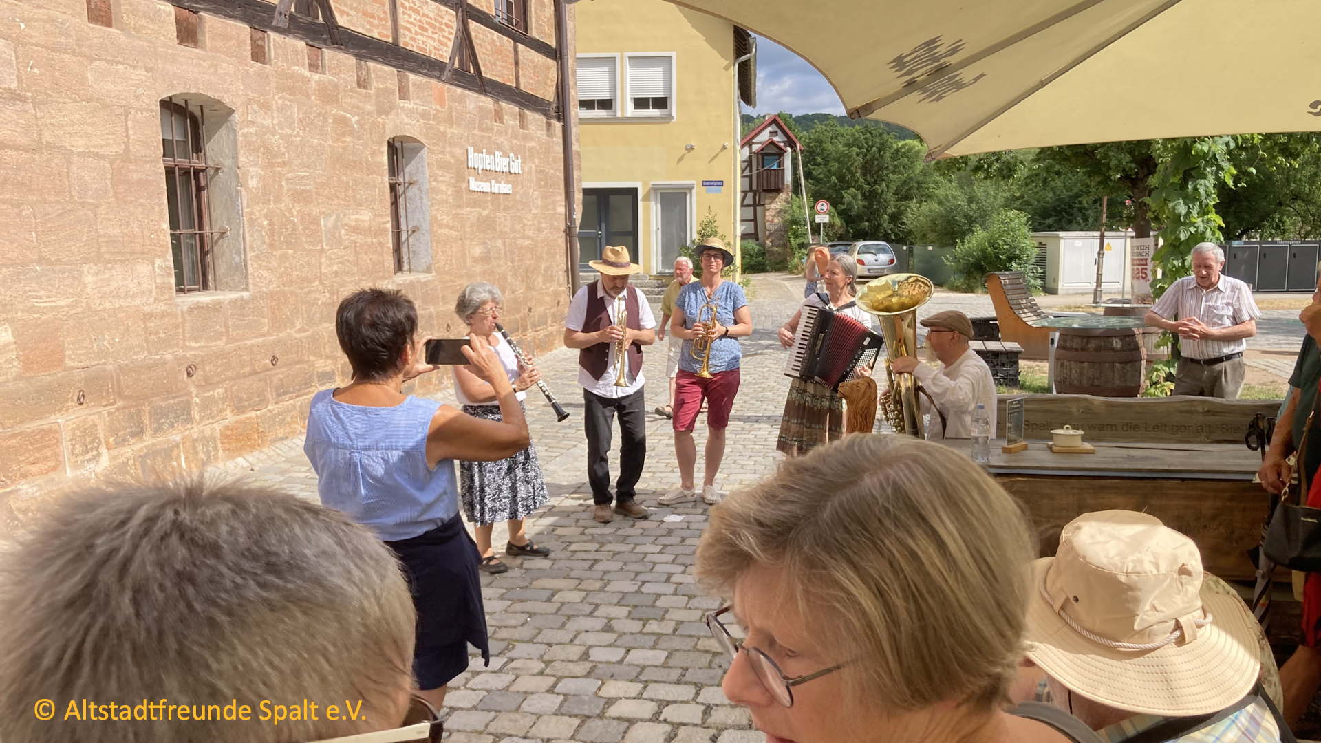 Schon wieder ein Jahr rum! Es war Zeit für den alljährlichen Rundgang durch Spalt, begleitet von den Fränkischen Straßenmusikanten, die auf das Feinste aufspielten. Petrus meinte es auch gut mit uns, Sonne mit gnädigen Wolken, die verhinderten, dass die Teilnehmer zu sehr schwitzen.