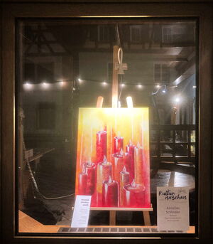 Alle Künstler und Kunsthandwerker der Schaufensteraktion werden auch im Frühjahr 2021 an der geplanten dezentralen Kunst- und Kunsthandwerkausstellung in Spalt teilnehmen. Die Schaufensteraktion ist eine Art Vorschau auf die Ausstellung, sie soll aber auch für die Anwohner und Besucher der Innenstadt ein paar Lichtpunkte in der Adventszeit setzen. Schaufenster sind im Moment die einzige Möglichkeit für kulturelle Aktionen.