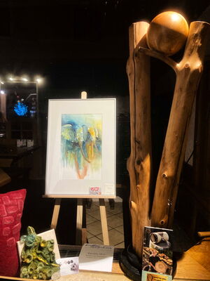 Ausserdem wurde im HopfenBierGut eine Art Innenschaufenster mit Bildern und Skulpturen gestaltet, die während der Öffnungszeiten des Tourist-Information besichtigt werden können.