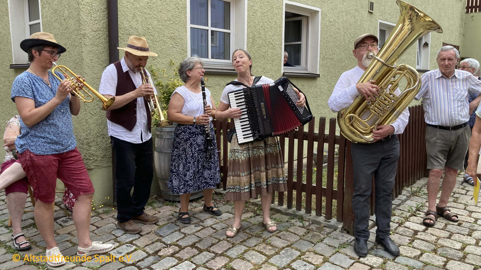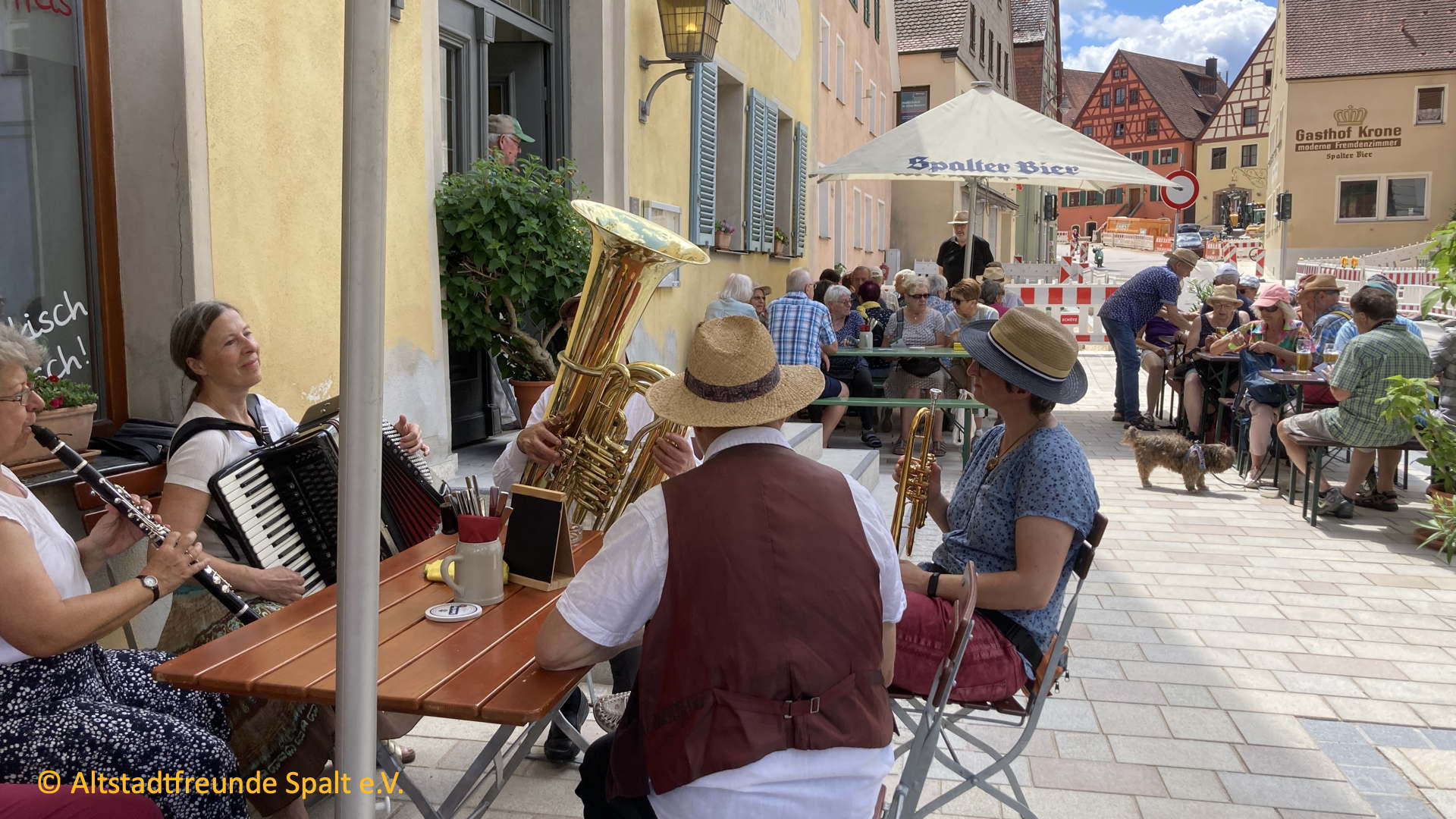 Schon wieder ein Jahr rum! Es war Zeit für den alljährlichen Rundgang durch Spalt, begleitet von den Fränkischen Straßenmusikanten, die auf das Feinste aufspielten. Petrus meinte es auch gut mit uns, Sonne mit gnädigen Wolken, die verhinderten, dass die Teilnehmer zu sehr schwitzen.