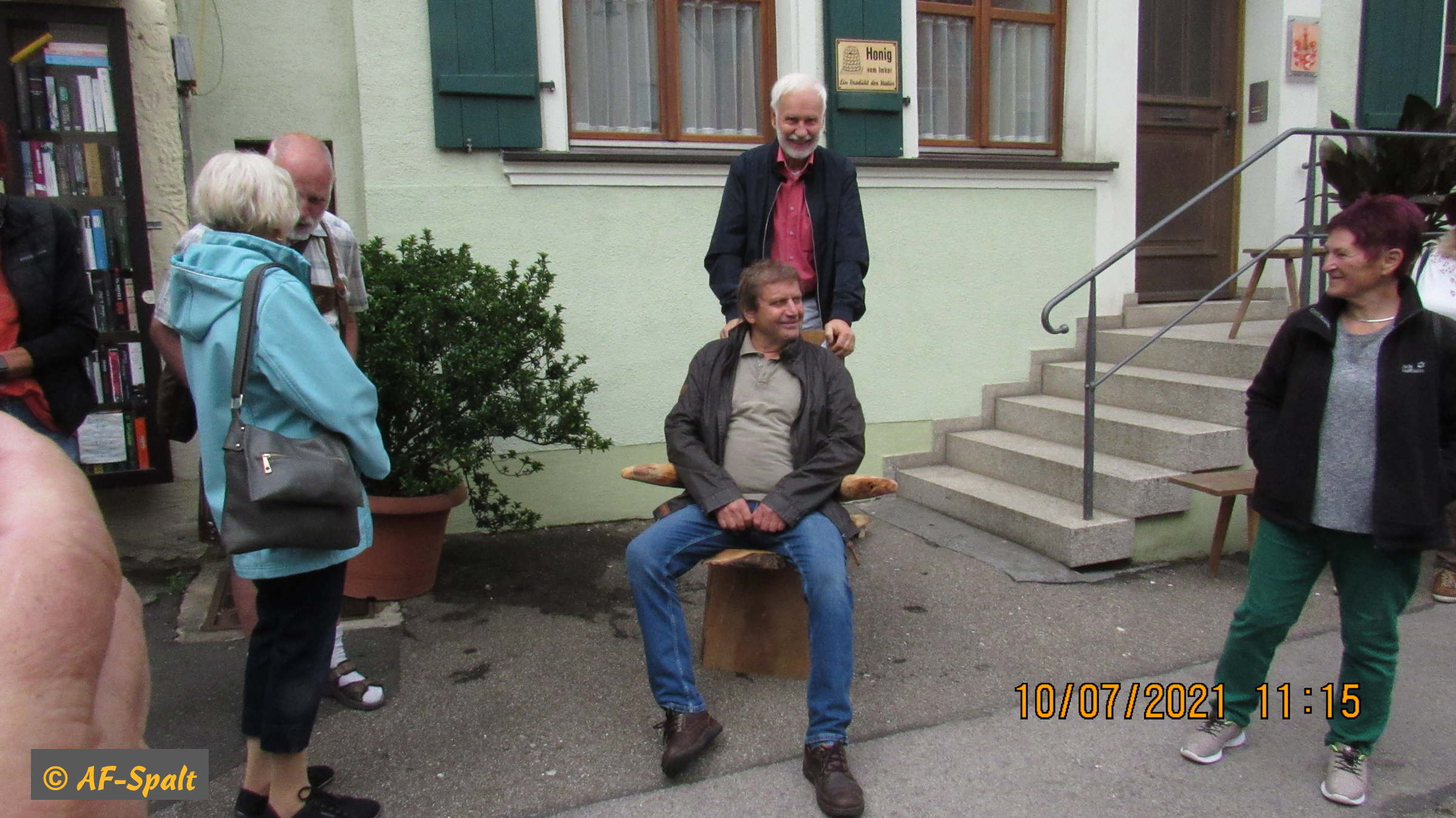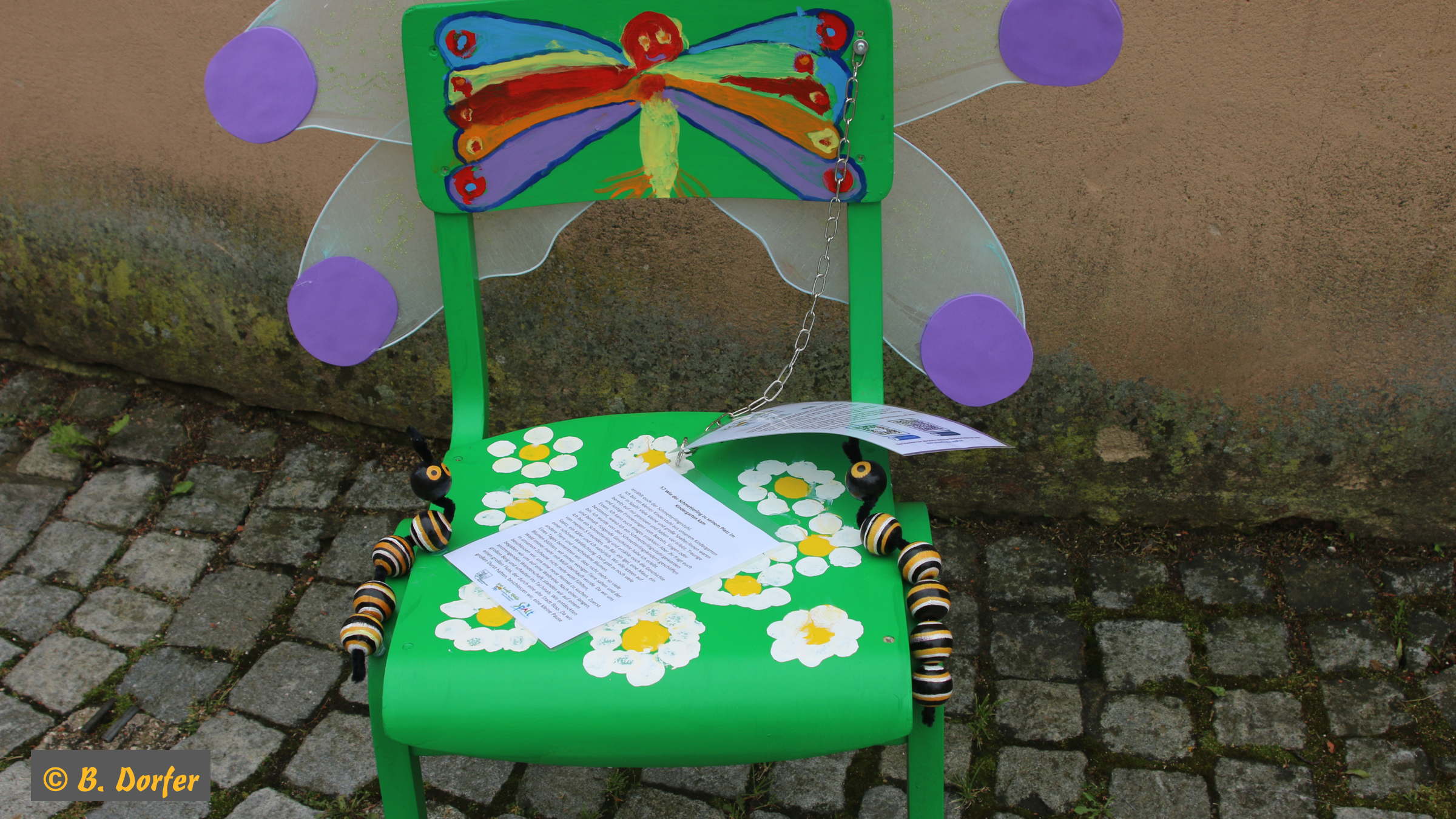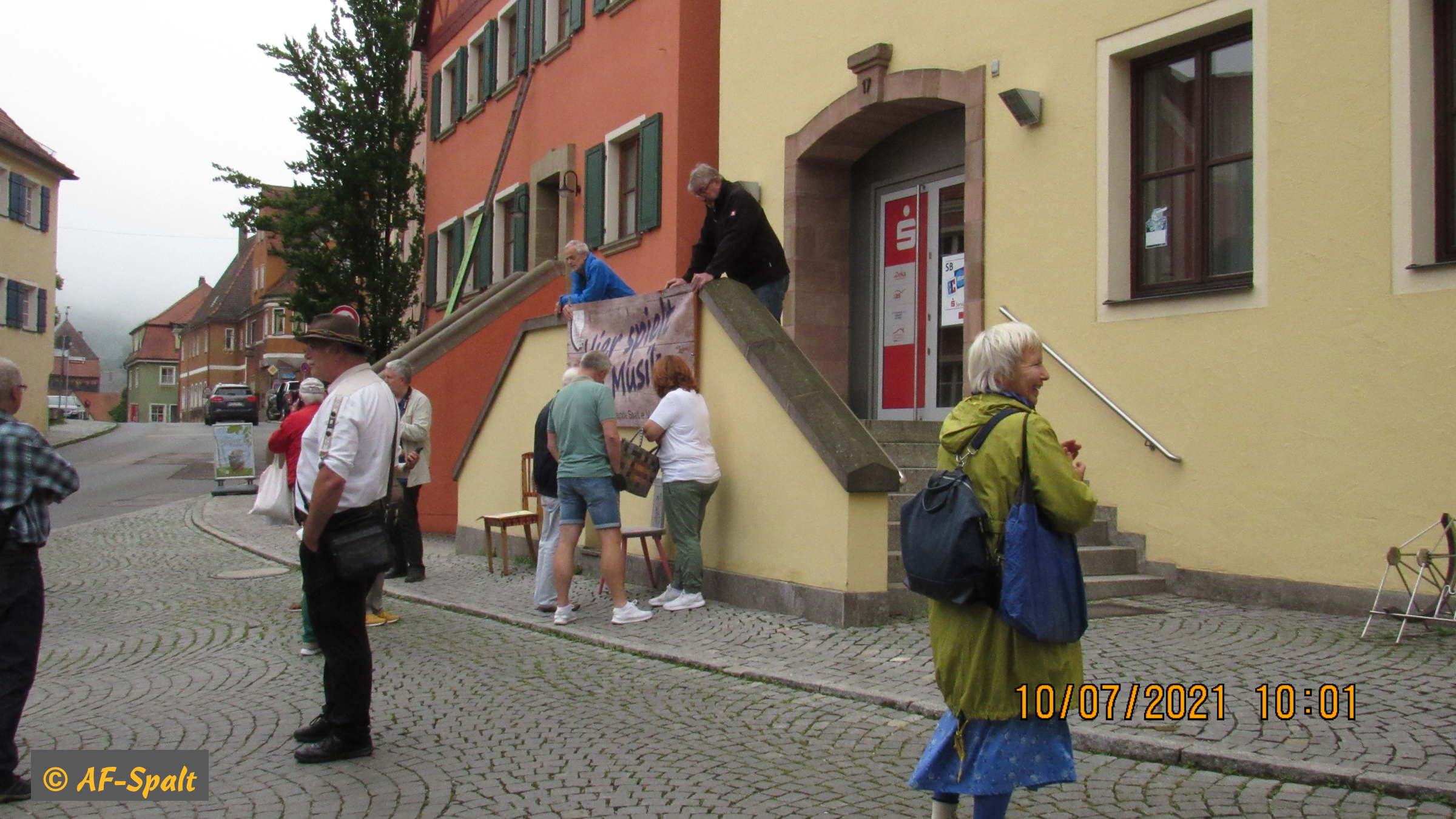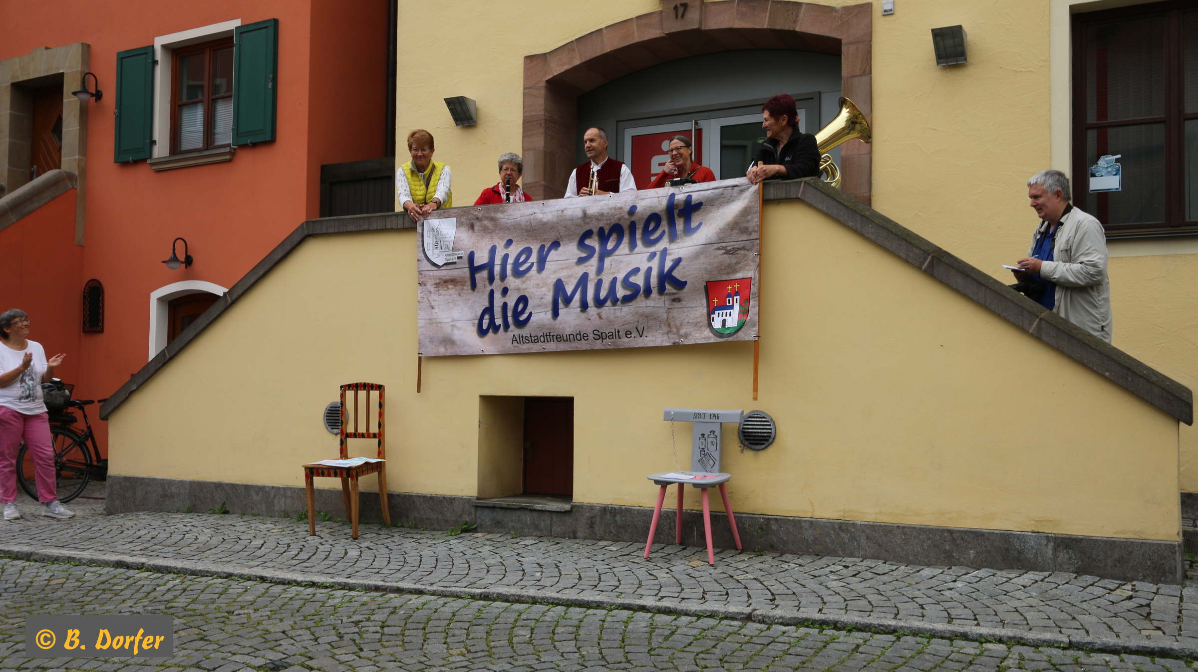 Gleichzeitig wurde die Aktion »100 bunte Stühle« eröffnet. Der Organisator dieser Aktion, Herr Guderle, ein Neuspalter, und unser Bürgermeister, Herr Weingart, waren ebenso wie Herr Eitel vom HopfenBierGut - er hat die Aktion auch tatkräftig unterstützt - natürlich persönlich anwesend.