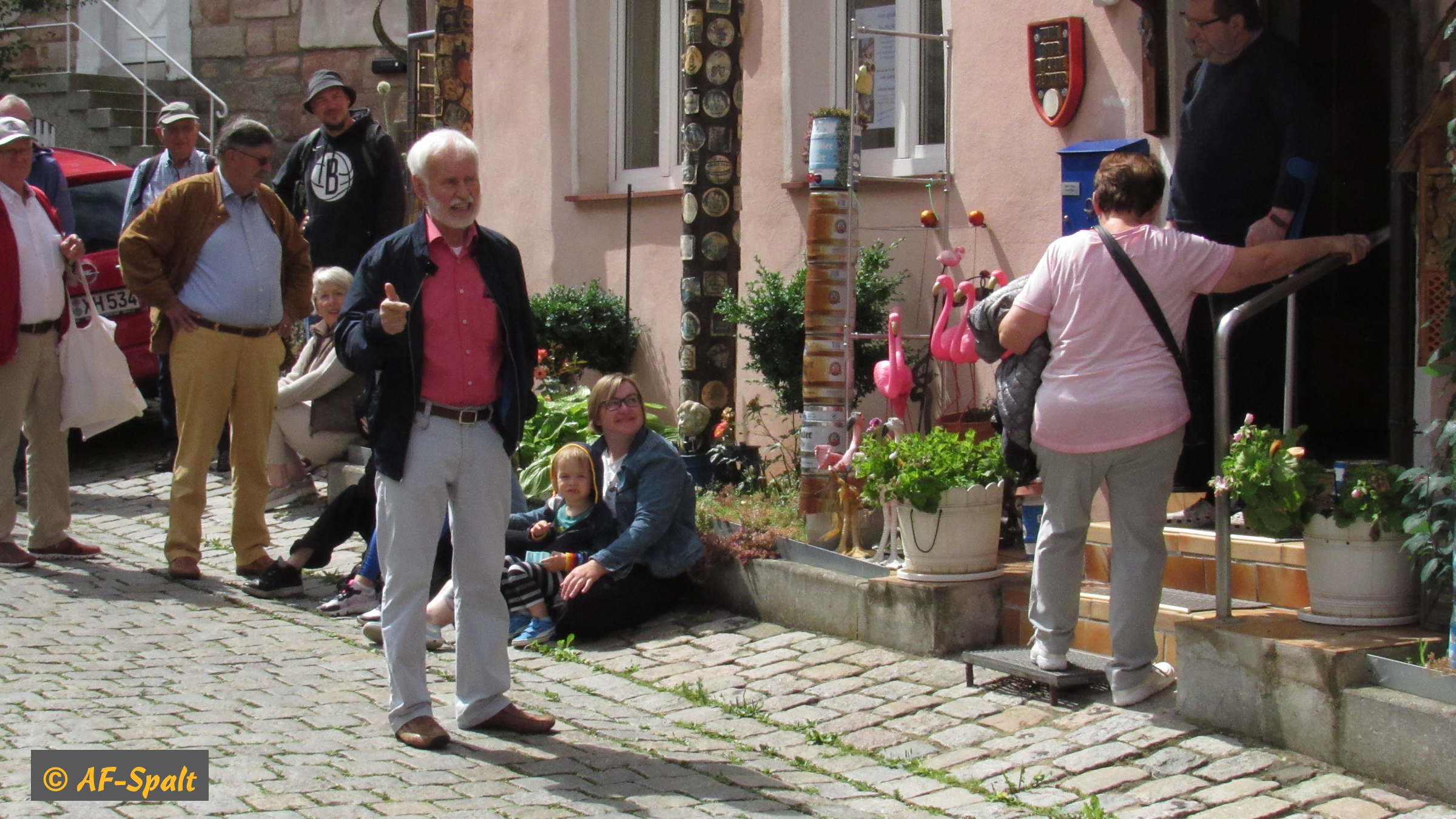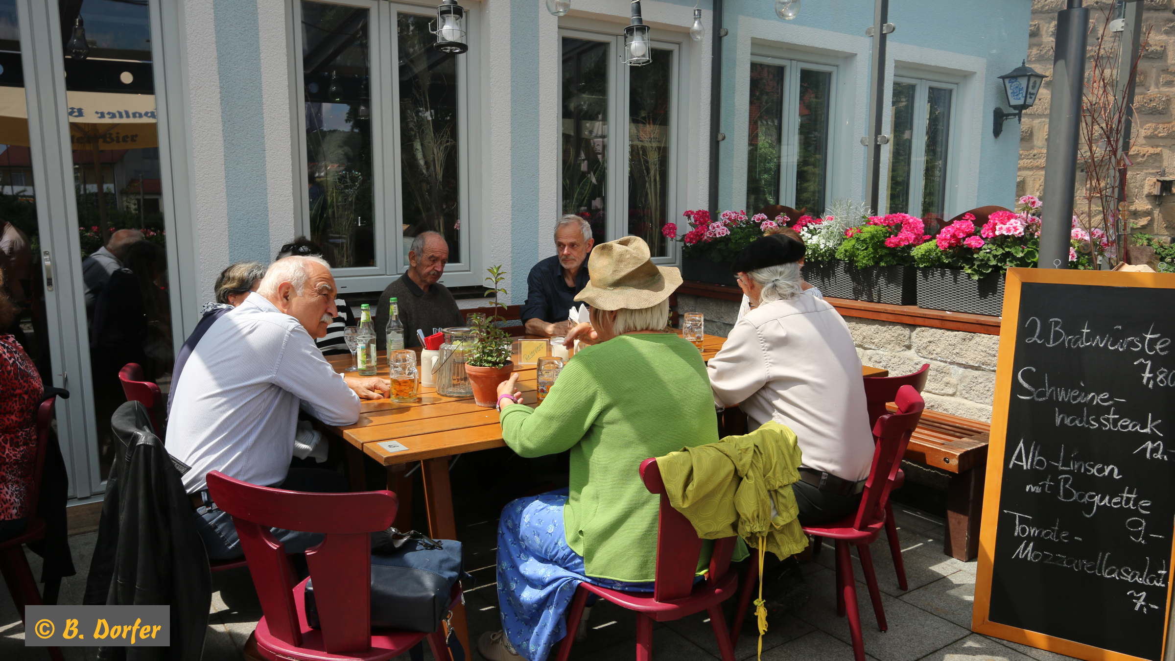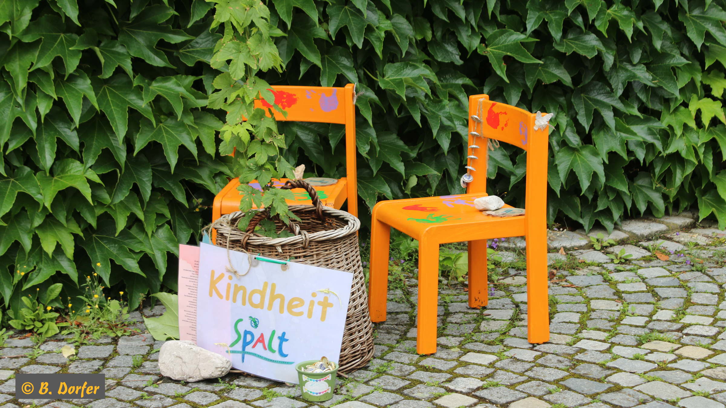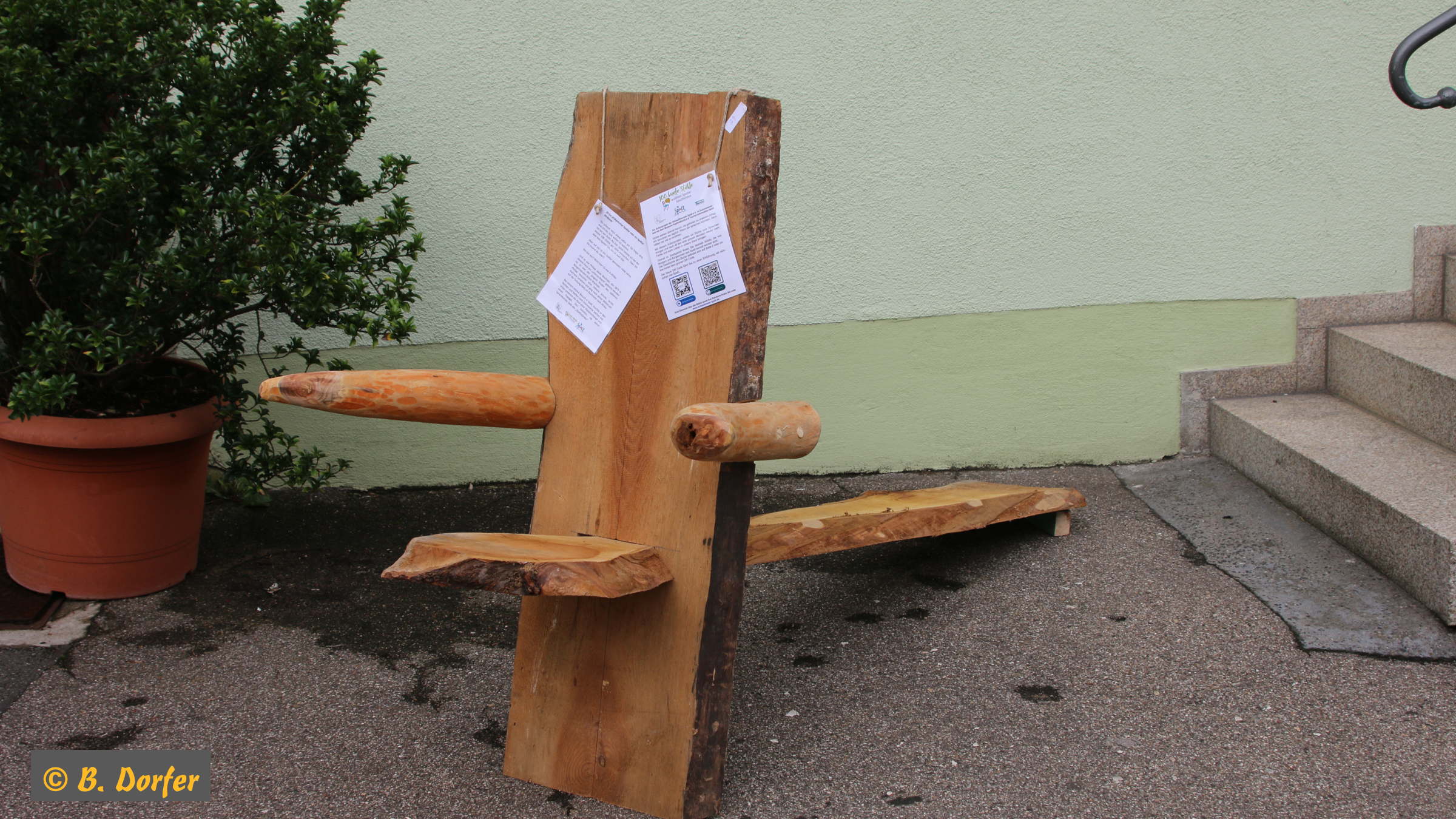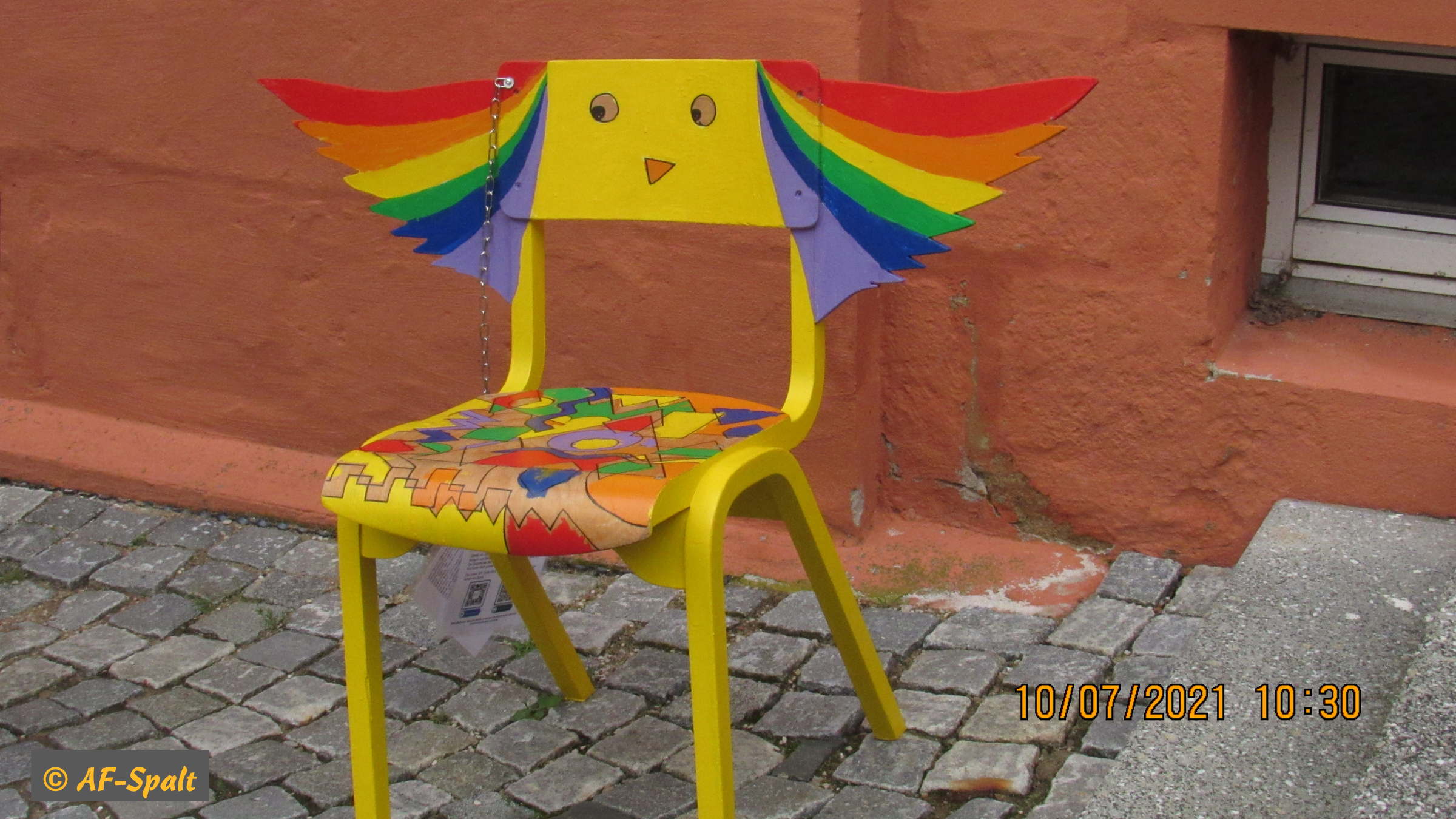 Gleichzeitig wurde die Aktion »100 bunte Stühle« eröffnet. Der Organisator dieser Aktion, Herr Guderle, ein Neuspalter, und unser Bürgermeister, Herr Weingart, waren ebenso wie Herr Eitel vom HopfenBierGut - er hat die Aktion auch tatkräftig unterstützt - natürlich persönlich anwesend.