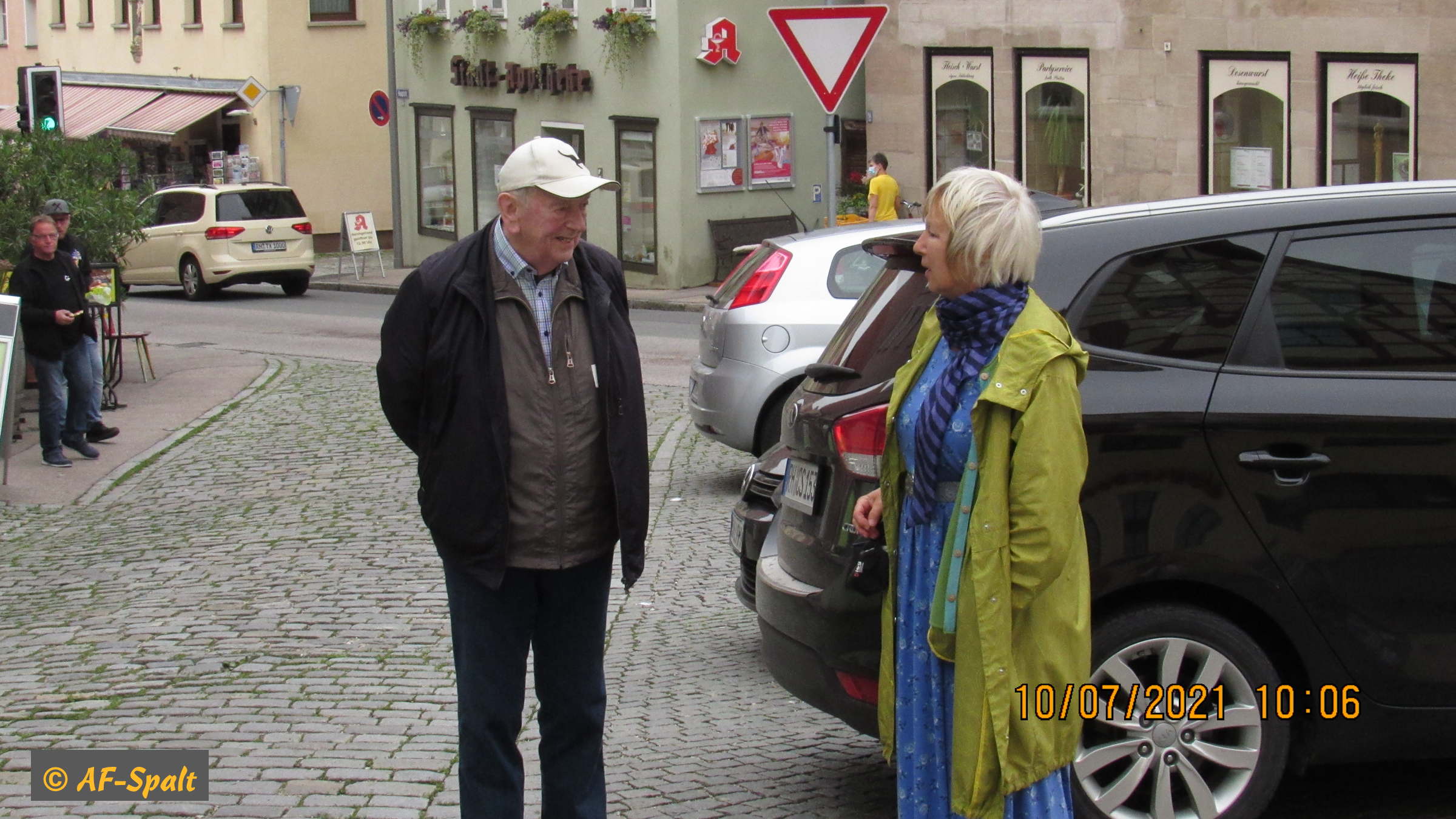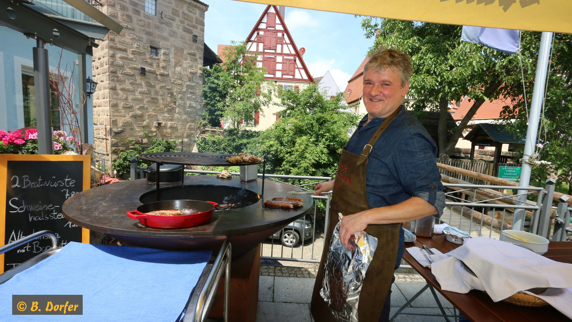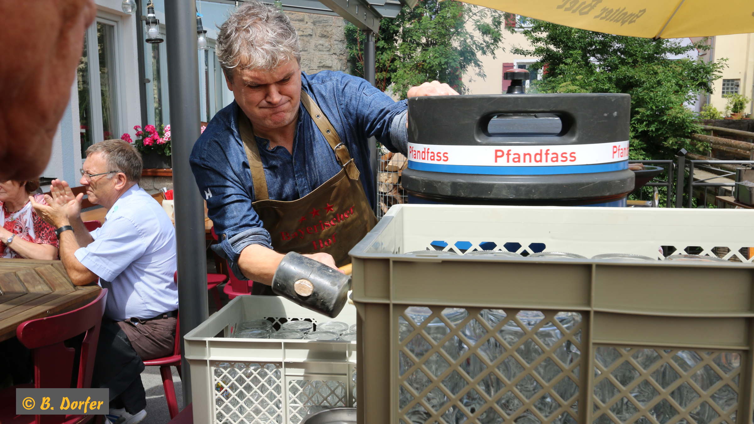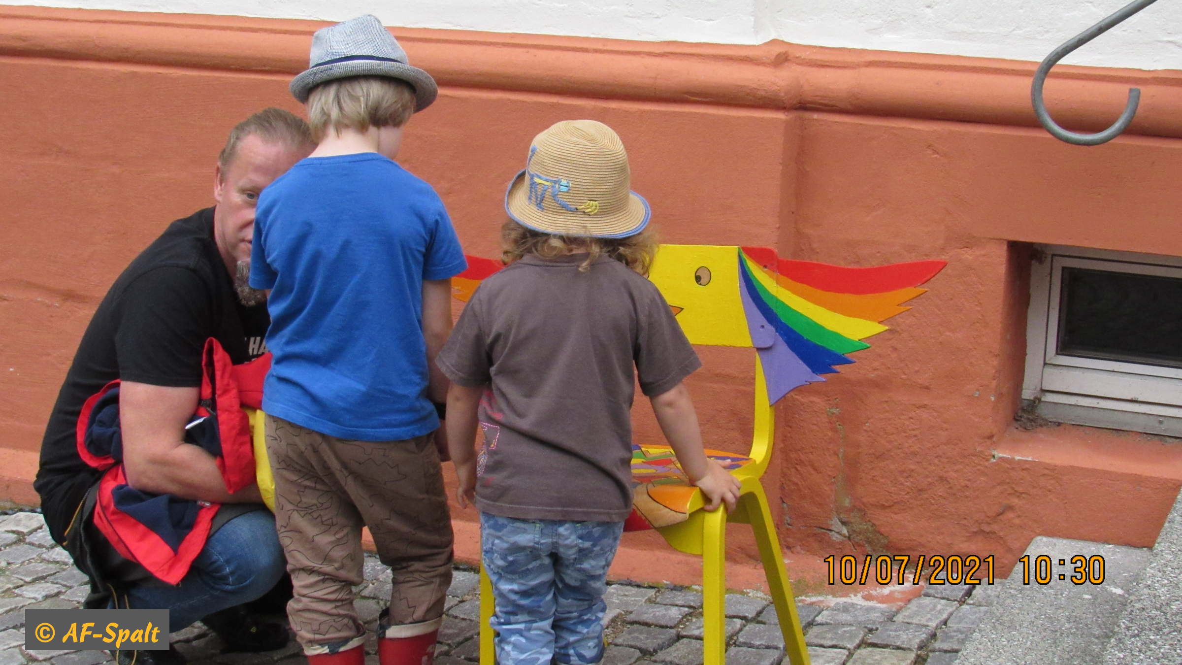 Gleichzeitig wurde die Aktion »100 bunte Stühle« eröffnet. Der Organisator dieser Aktion, Herr Guderle, ein Neuspalter, und unser Bürgermeister, Herr Weingart, waren ebenso wie Herr Eitel vom HopfenBierGut - er hat die Aktion auch tatkräftig unterstützt - natürlich persönlich anwesend.