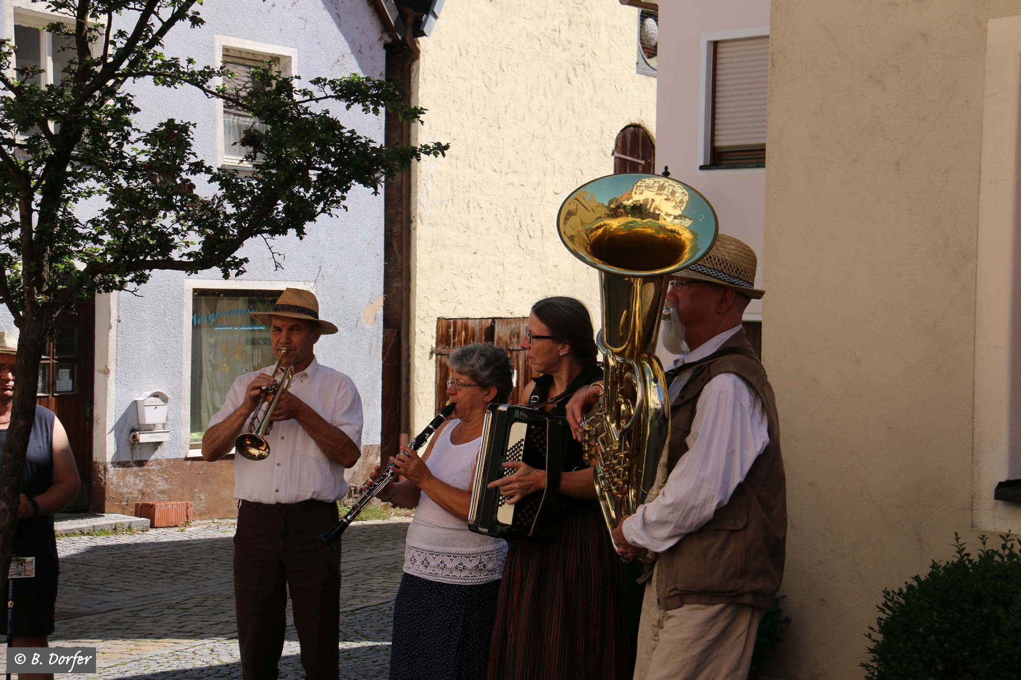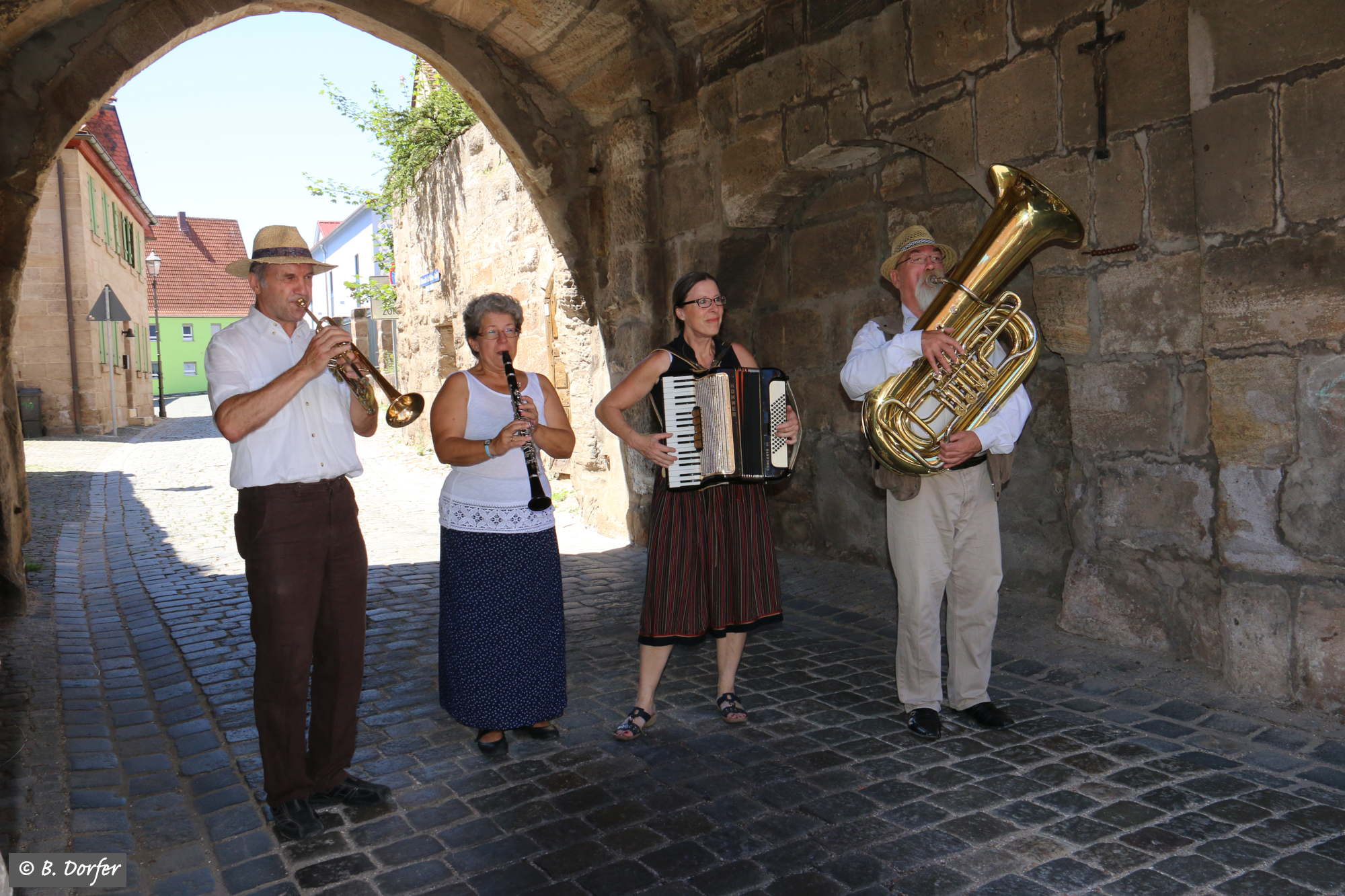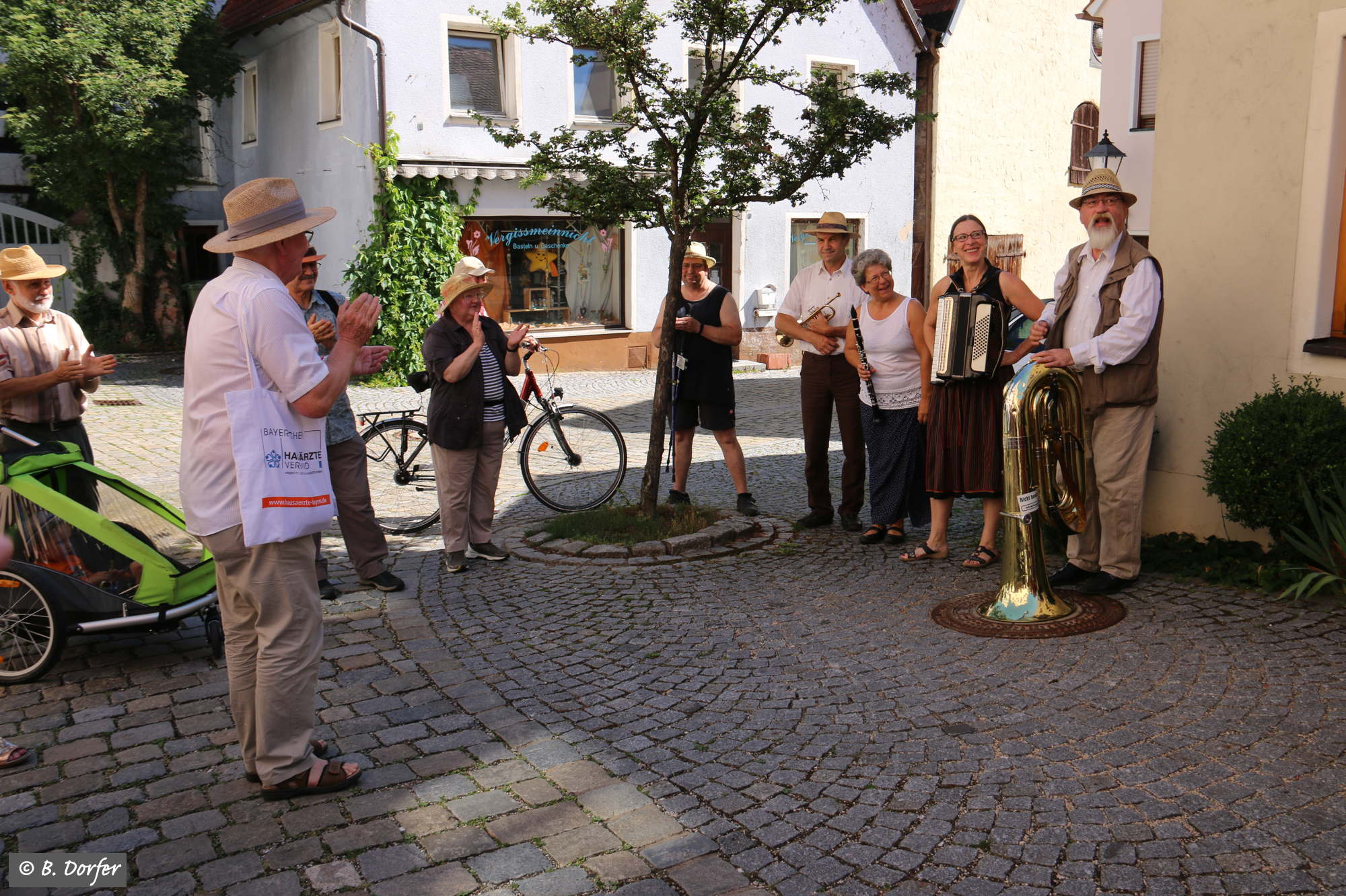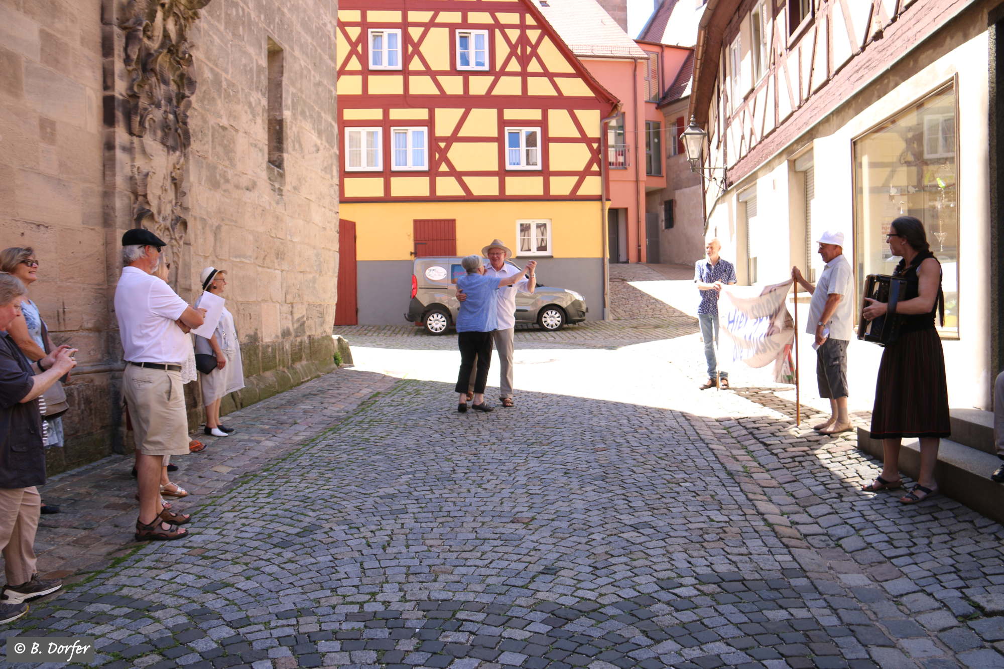 Die fränkischen Straßenmusikanten spielten zudem immer wieder so wunderbar auf, dass, trotz der Hitze, das eine oder andere Tänzchen gewagt wurde.