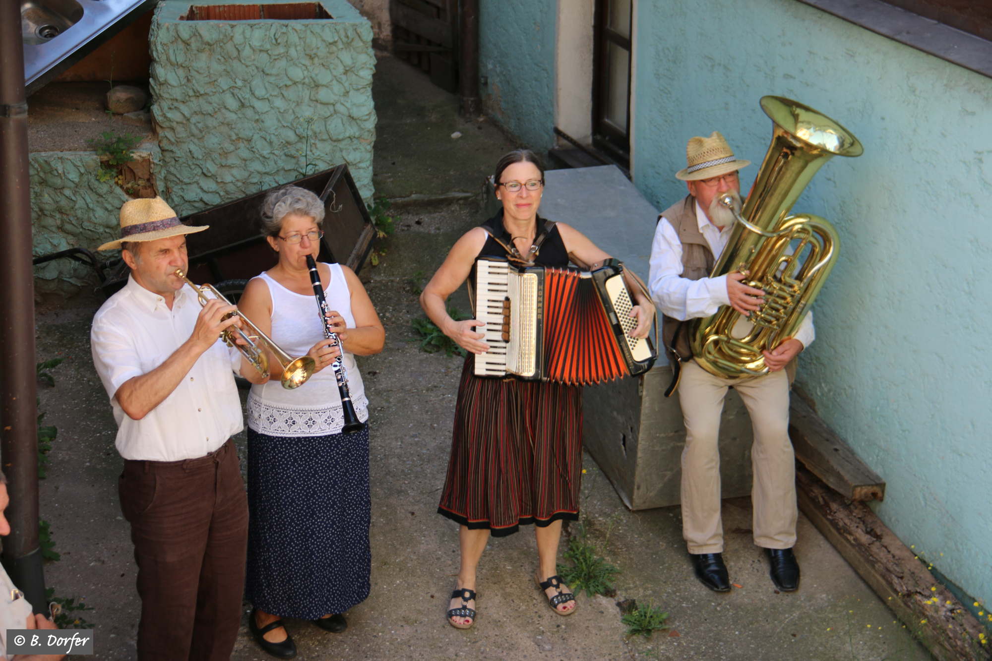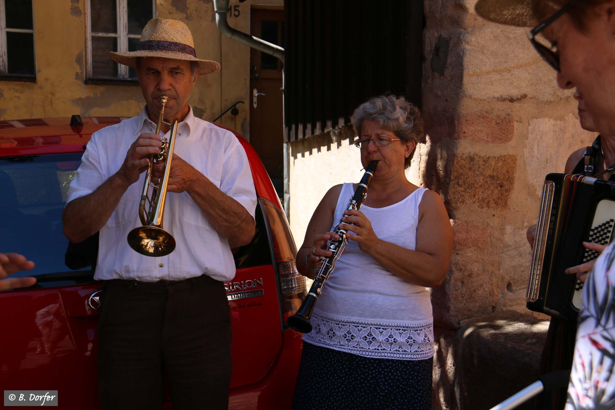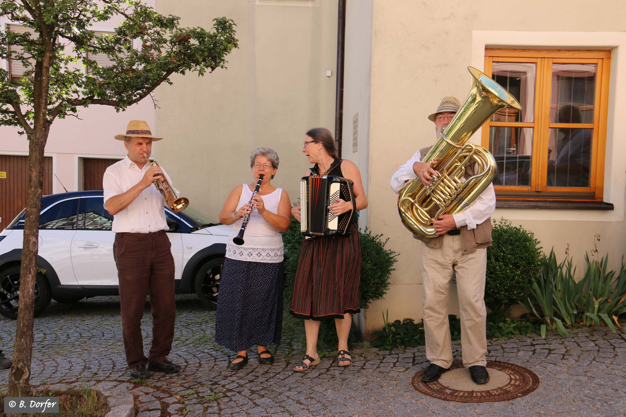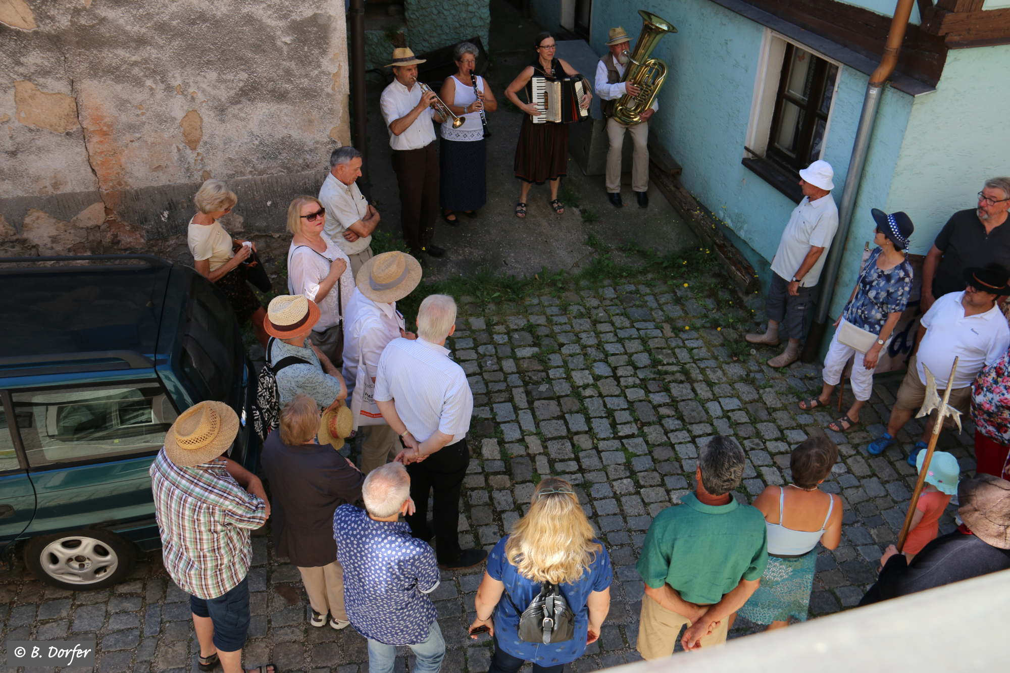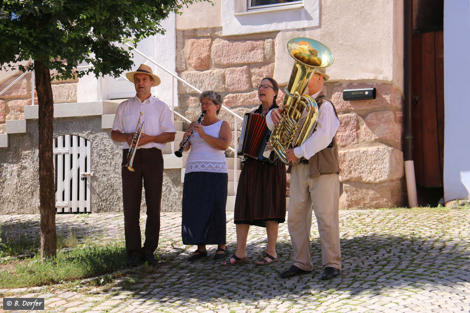 Die fränkischen Straßenmusikanten spielten zudem immer wieder so wunderbar auf, dass, trotz der Hitze, das eine oder andere Tänzchen gewagt wurde.