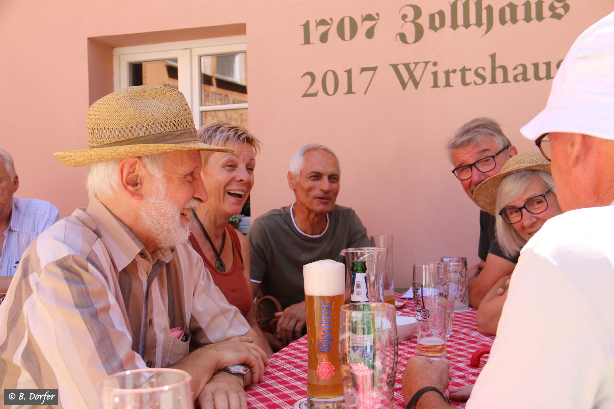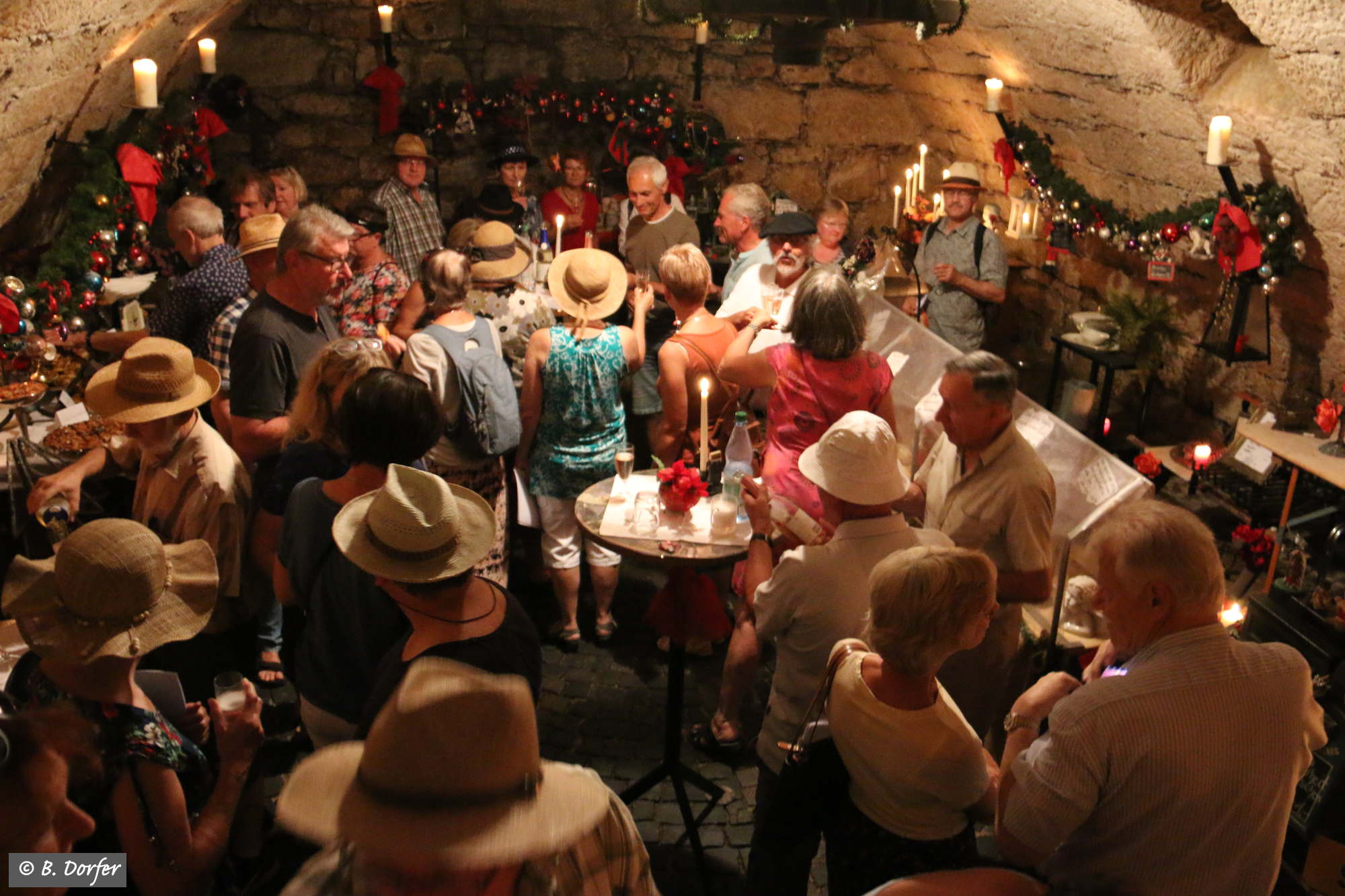 Alle Teilnehmer und Teilnehmerinnen wurden von Frau Krempel in ihren kühlen Keller gebeten, wo sie die von der Sonne erhitzten Menschen mit Selbstgebackenem und Getränken bewirtete. Dafür sei Ihr ein großer Dank!